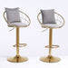 Velvet Bar Chair, Pure Gold Plated, Unique Design, 360 Degree Rotation, Adjustable Height, Suitable For Dining Room And Bar, (Set of 2) - Gray