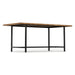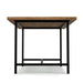 - The base is made with powder-coated iron metal and features square legs and a low crossbar that provides stability without blocking dining chairs from being pushed in.