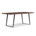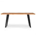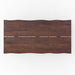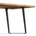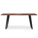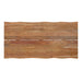 • Made with sustainably sourced solid acacia wood, the thick tabletop is comprised of 2 panels connected by butterfly joints and has live edges on the longer exterior sides that give this dining room table a rustic, natural look.