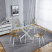 Dining Table With Cross Metal Leg And Tempered Glass, Modern Space Saving Kitchen Table For Living Room Legs - White