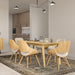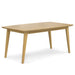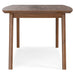 - Supporting the tabletop are robust, solid rubberwood legs that are angled and tapered with a rounded-square shape, and an inset table apron that adds a refined touch.