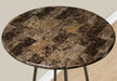 • Contemporary Design: This 30" round bar height table features a warm multi brown marble-look laminate top paired with sturdy brown metal legs, offering a sleek and modern aesthetic.