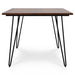 • Table base is made of powder-coated iron metal with trendy hairpin-style legs that bring an open, airy feel to a dining space.