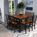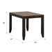 • The Melissa gathering height table bridges the space between casual and formal dining with a lively two-tone finish on solid acacia wood.