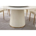 Modern Sintered Stone Dining Table With Round Turntable, Wood And Metal Pedestal, 8 Chairs - White