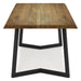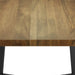 - The thick, rectangular tabletop is made with sustainably sourced solid mango wood that gives this dining table a rustic touch.