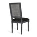 French Country Dining Chair With Rectangular Cane Backrest And Smooth Upholstered Seating