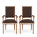 French Country Style Upholstered Dining Chair With Square Backrest And Fluted Legs - Brown
