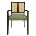 Mid Century Modern Arm Dining Chair (Set of 2) With Rattan Backrest - Dark Brown / Green