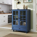 Vintage Buffet Cabinet With Double Glass Doors And Drawer, Storage Sideboard - Blue