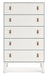 | Details | Made with engineered wood (MDF/particleboard/plywood) and decorative laminate for the right balance of affordability and durability, White painted finish with subtle replicated wood grain, Faux leather drawer pulls with brass-tone rivets; light brown and gray options included, 5 smooth-gliding drawers with vinyl-wrapped sides and back, Splay legs, Safety is a top priority, clothing storage units are designed to meet the most current standard for stability, ASTM F 2057 (ASTM International), Drawers extend out to accommodate maximum access to drawer interior while maintaining safety, Assembly required | |