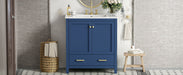 Bathroom Vanity With Single Sink, Combo Cabinet Undermount Sink, Bathroom Storage Cabinet With 2 Doors And A Drawer, Soft Closing, Multifunctional Storage, Solid Wood Frame - Blue