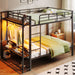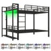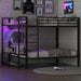 Full Size Bunk Bed With Storage Mesh Shelves, Clothes Hooks, LED Light - Black
