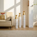 - Polished & Hammered Gold Finish: A blend of polished and hammered gold finishes creates an elegant contrast against the textured white exterior.