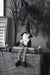 Sitting Gnome With Broomstick & Long Legs, For Halloween Decor - Black White