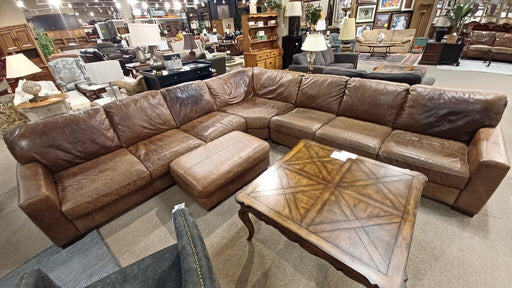 Consign Furniture3 Piece Brown Leather 7 Seater Sectional With Matching Ottoman