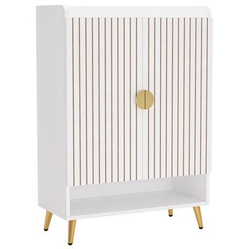 Home EssentialsElegant Modern Design: metal legs and slim gold handles on carved doors for a refined look in any room Spacious 6-Tier Storage: Holds up to 30 pai...