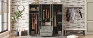6 Doors Wardrobe Storage For Bedroom, With Big Drawers - Gray
