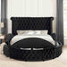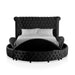 Eastern King Size Round Bed With Wingback Design Like, Button Tufted, USB Charging - Black