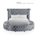 Glam Button Tufted Wingback Round Bed With Storage And USB Ports