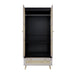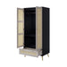 Tall Armoire Wardrobe Closet With 2 Rattan Doors & 1 Drawer, Boho Clothes Storage Cabinet With Hanging Rod For Bedroom - Natural / Black