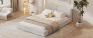 Queen Size Upholstered Platform Bed, Grounded Bed With Solid Frame - Beige