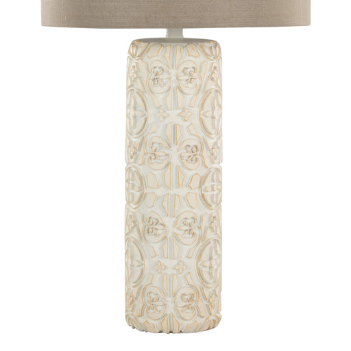 Lumi SourceElegant Design: The Petra Table Lamp by LumiSource features a rich cream polyresin base with an intricate textured finish, adding elegance an...