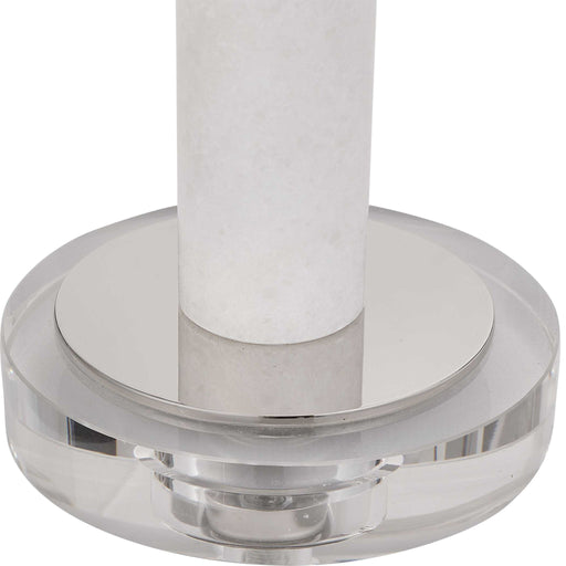 UttermostShowcasing A Transitional Elegance, This Buffet Lamp Features A Plated Polished Nickel Finish With Sophisticated White Marble Details And A Thick C...