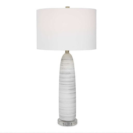 UttermostThis Sleek Ceramic Table Lamp Features A Matte White Glaze With Brushed Light Gray Detailing, Paired With Brushed Nickel Plated Accents And A Cryst...