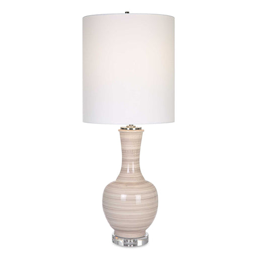 UttermostThis Table Lamp Showcases A Traditional Curved Silhouette In A Striking Striped Motif. The Ceramic Base Displays Shades Of Taupe, Tan, And Charcoal...