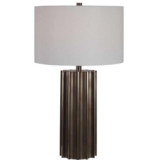 UttermostThis Table Lamp Features A Deep Fluted Steel Base Finished In An Aged Gunmetal With Rust Distressing And Brass Plated Edges, For A Rustic Industria...