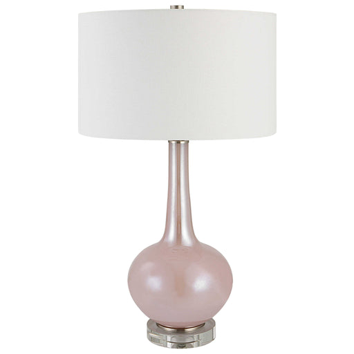 UttermostElegant And Sophisticated, The Rosa Table Lamp Showcases A Light Blush Pink Glass Base With Brushed Nickel And Crystal Details. The Hardback Drum S...