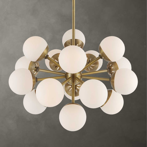 UttermostDesigned With Mid-Century Roots A Sputnik Center Structure Finished In A Warm Antique Brass And Accented With 5" Matte White Opal Globes Yields A M...