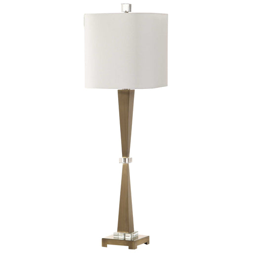 This Sleek Design Features Tapered Steel Columns, Finished In Plated, Lightly Antiqued Brushed Brass, Accented With Thick Crystal Details. The Squa...