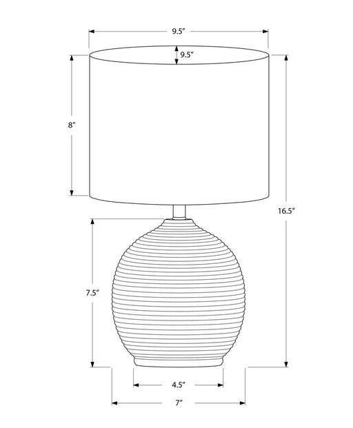 8th StreetElegant Design: Striking cream ceramic table lamp with a modern beehive-shaped base and textured groove lines. Ivory fabric drum shade provides...