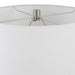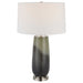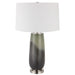 This Elegant Table Lamp Features A Beautiful Speckled Green And Gray-blue Ombre Glass Base With Crystal Accents And Brushed Nickel Finished Iron Details. The Hardback Shade Has A Slight Taper And Is Covered In A White Cotton Fabric.
