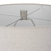 This Table Lamp Features A Graceful Tapered Base Crafted From Artisanal Blue-green Metallic Glass. Iron Accents Are Finished In Brushed Nickel. The Drum Shade Is Covered In A Light Oatmeal Fabric With Natural Slubbing.