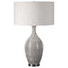 This Ceramic Base Features A Coarse, Horizontal Texture, Finished In A Mushroom Gray Glaze, Accented With Plated Polished Nickel Details. The Round Hardback Drum Shade Is A Light Beige Linen Fabric With Natural Slubbing. Due To The Nature Of Fired Glazes On Ceramic Lamps, Finishes Will Vary Slightly.