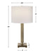 This Sophisticated Table Lamp Showcases A Streamlined Metal Column Base Finished In Antique Brass. The Round Hardback Shade Is Covered In White Linen Fabric.