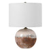 This Accent Lamp Features A Ceramic Base Finished In An Earthy Terracotta Rust That Transitions Into A Crackled Aged White Glaze, Accented With Light Antique Brass Plated Details. The Lamp Is Paired With A White Linen Drum Shade.