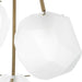 Three Sizes Of Frosted Geometric Shaped Glass Give Us The Focal Point For This Celestial Feeling 3 Lt. Pendant. The Glass Sizes Are Small At 6", Medium At 7" And Large At 8" Each Suspended From A Preset Rod Length Accented With A Rich Matte Antique Brass Finish. 3-60 Watt Max Candelabra Sockets. Bulbs Not Included. Supplied With 12' Wire, 5' Chain For Adjustable Installation.