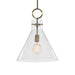 Playful Funnel Shaped Clear Glass Bestows An Almost Whimsical Touch To The Clean Design Of This 1 Lt. Pendant With Aged Brass Strengthening The Modern Line. 1-100 Watt Max, Edison Socket. Bulb Not Included. Supplied With 15' Wire, 3-12" Stems And 1-6" Stem For Adjustable Installation.