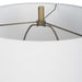 This Ceramic Table Lamp Showcases A Contemporary Abstract Geometric Design Finished In A Striking Navy Blue Gloss Glaze With Plated Brushed Brass Details. Paired With A Tapered Hardback Shade In A White Linen Fabric.