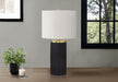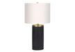 - Stylish Design: This 24" table lamp features a ribbed black concrete cylinder base with gold metal accents and an ivory linen drum shade.