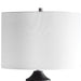 Showcasing A Modern Lodge Style, This Table Lamp Features A Carved Wood Base Finished In A Rustic Black Stain Exposing Subtle Wood Grain, Accented With Brushed Nickel Plated Details. The Lamp Is Paired With A Round Hardback Drum Shade In A White Linen Fabric.