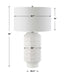 This Contemporary Ceramic Table Lamp Features A Repeating Window Pane Pattern Of Embossed Tiles Finished In A Chalk White Glaze Accented With Antique Brass Plated Details. The Round Hardback Drum Shade Is A Casual White Linen Fabric.