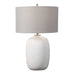 Simple Yet Versatile, This Ceramic Table Lamp Features A Cream-ivory Drip Glaze With Subtle Texture, Accented By Brushed Nickel Plated Details. The Lamp Is Paired With A Light Gray Linen Fabric Drum Shade.