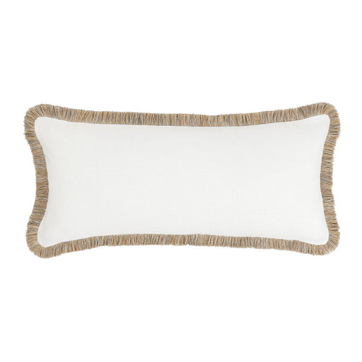 A grounded cotton and linen textured fabric raise the lush texture of fringe around this pillow design. A perfect pillow for layering, a soft feath...