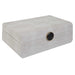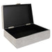 Inspired By The Art Deco Era, This Decorative Box Showcases A Faux White Shagreen Wrapped Surface Accented By A Brushed Antique Brass And Black Enamel Closure. The Interior Is Finished In Matte Black.