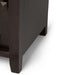 - Features two (2) sliding tempered glass doors that open to a cabinet with two (2) adjustable shelves
